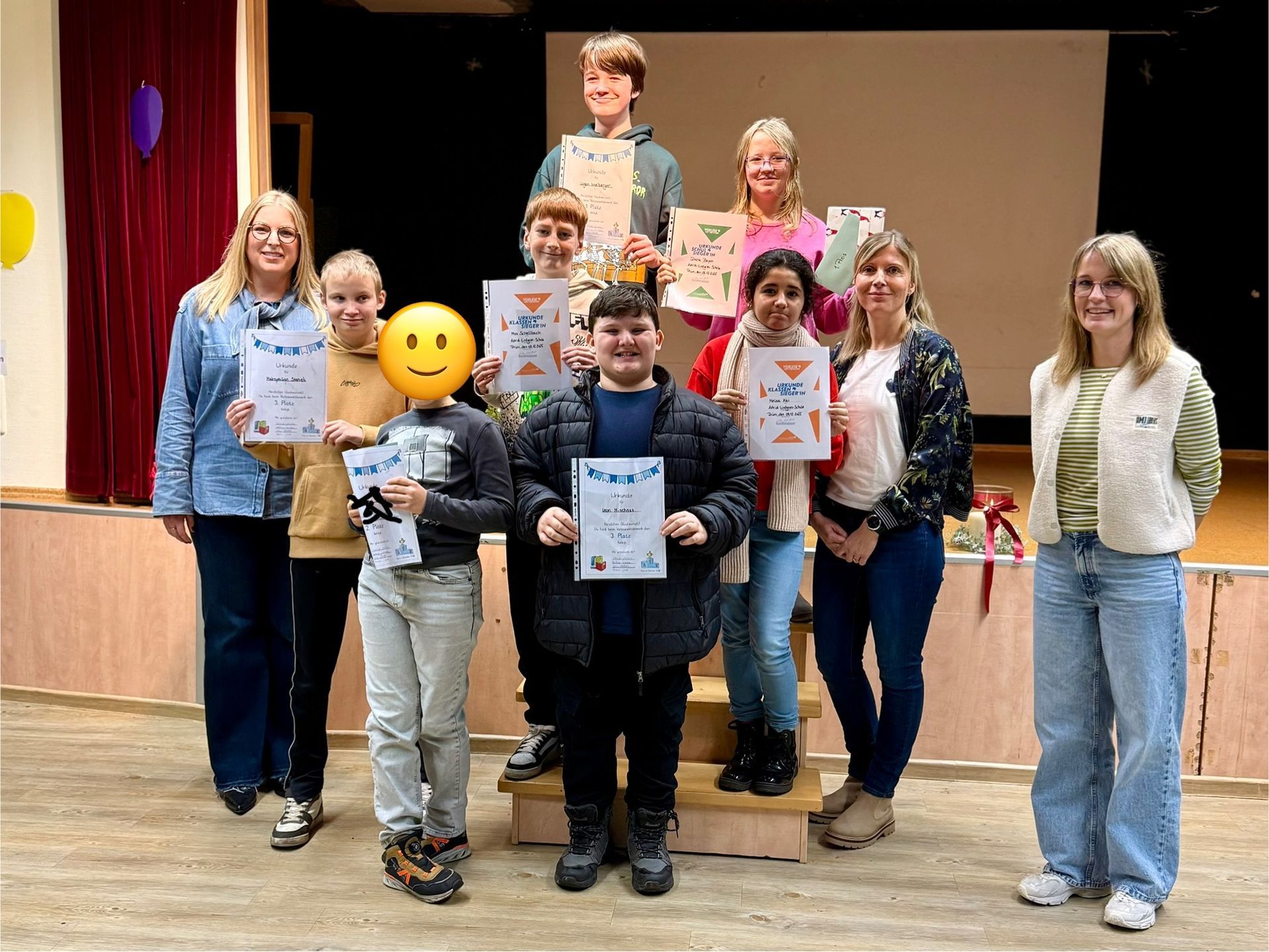 Am 3. Dezember fand der alljährliche Vorlesewettbewerb an der Astrid-Lindgren-Schule statt. Im Rahmen des offiziellen bundesweiten Wettbewerbs der 6. Klassen wurde der bzw. die Schulsieger:in im Förderschwerpunkt Lernen ermittelt. Bereits zum zweiten Mal gab es auch einen schulinternen, integrativen Wettbewerb für Schüler:innen der Förderschwerpunkte Sprache und ganzheitliche Entwicklung, sowie eine Gastgruppe aus Förderschüler:innen der Bertrada-Grundschule (Schwerpunktschule). Teilnehmer und Publikum waren begeistert von den vorgelesenen Texten, der vorweihnachtlichen Stimmung und der spannenden Siegerehrung.