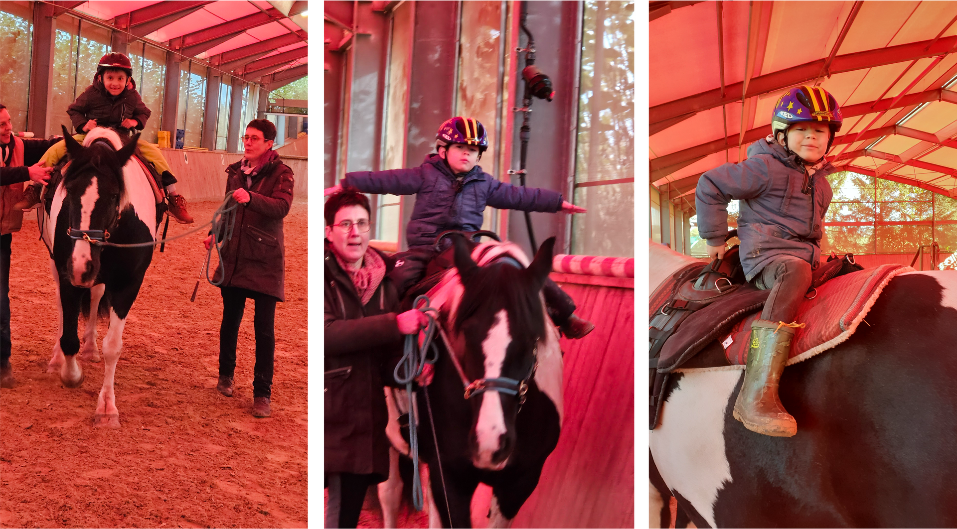 sonst so laute, immer unter Spannung stehende Tobi plötzlich ganz ruhig. Hier hat er einen klaren Platz gefunden, er erlebt Bewegungsreize und kann sich selbst spüren, ohne in seinem überhöhten Ausführungstempo agieren zu müssen. Das Wahrnehmen des gleichbleibenden Bewegungsrhythmus des Pferdes wirkt