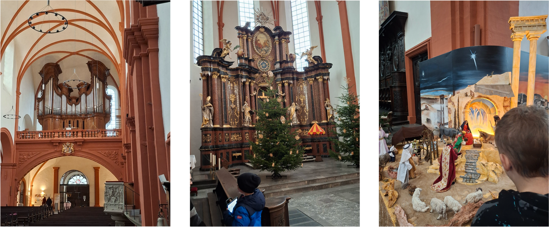 Die Schüler/innen der Klassen G 5 und G 7/8 haben im Rahmen des Religionsbandes die Basilika in Prüm besucht. Begleitet wurden wir von der Ehrenbürgerin- und der Basilika-Führerin der Stadt Prüm Frau Monika Rolef. Wir durften uns die neue Krippe anschauen. Zudem durften wir im Chorgestühl Platz nehmen, wo sonst nur Geistliche sitzen. Sehr beeindruckt waren wir von der Orgel, den heiligen Figuren, dem großen Altar mit dem "Gottesauge" und dem Grab von Kaiser Lothar Ì., der im Jahre 855 als Mönch gestorben ist. Das Steinhochgrab wurde 1878 von Kaiser Wilhelm gestiftet. Wir alle durften sogar die Krone anfassen und über den Kopf ziehen. Das war ein tolles Erlebnis.