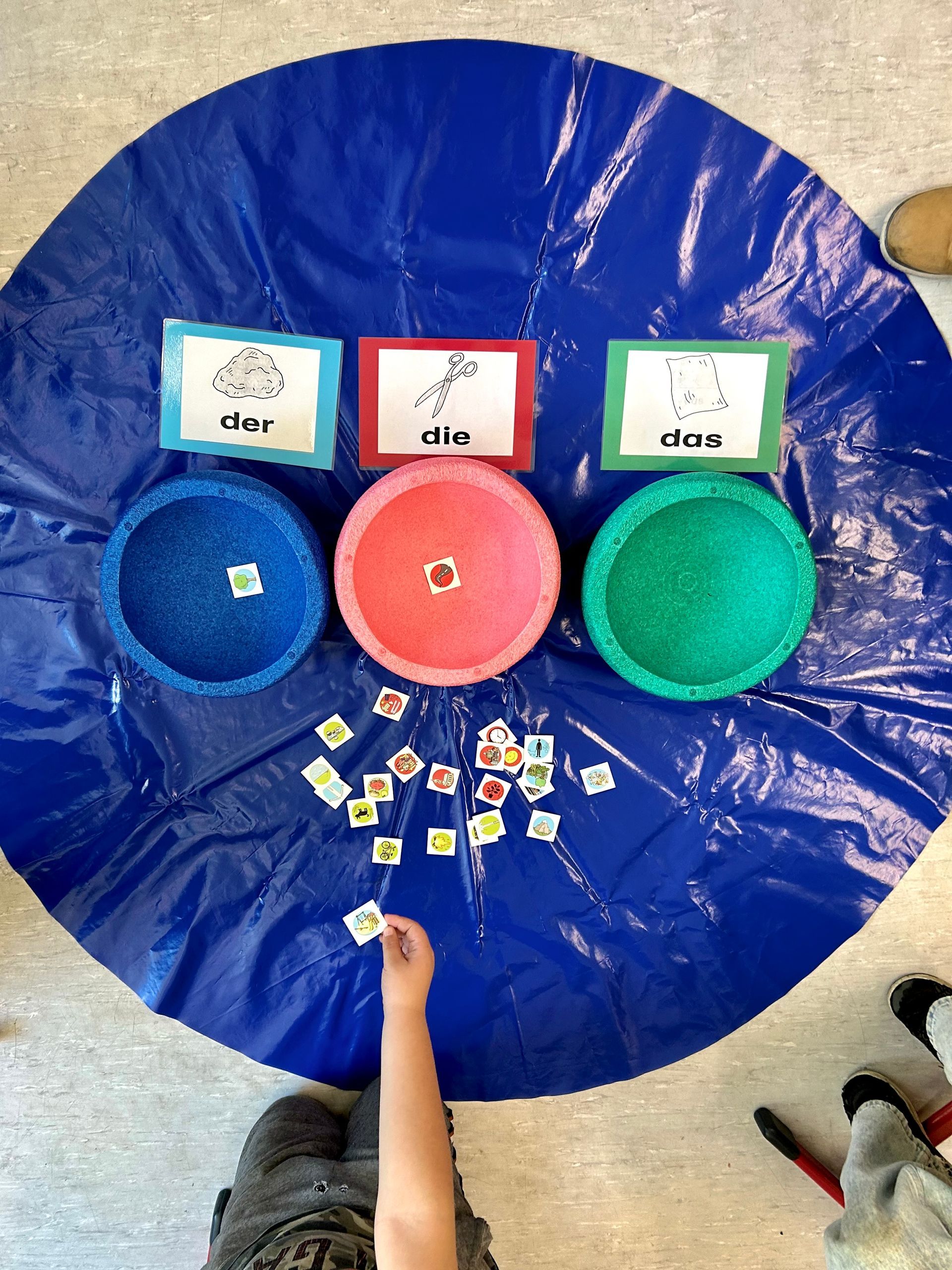 Im Deutschunterricht haben wir uns mit den bestimmten und unbestimmten Artikeln beschäftigt. Begriffe wurden benannt und sortiert. Farben 🔵🔴🟢 und Symbole 🪨 ✂️ 📄 helfen uns dabei: