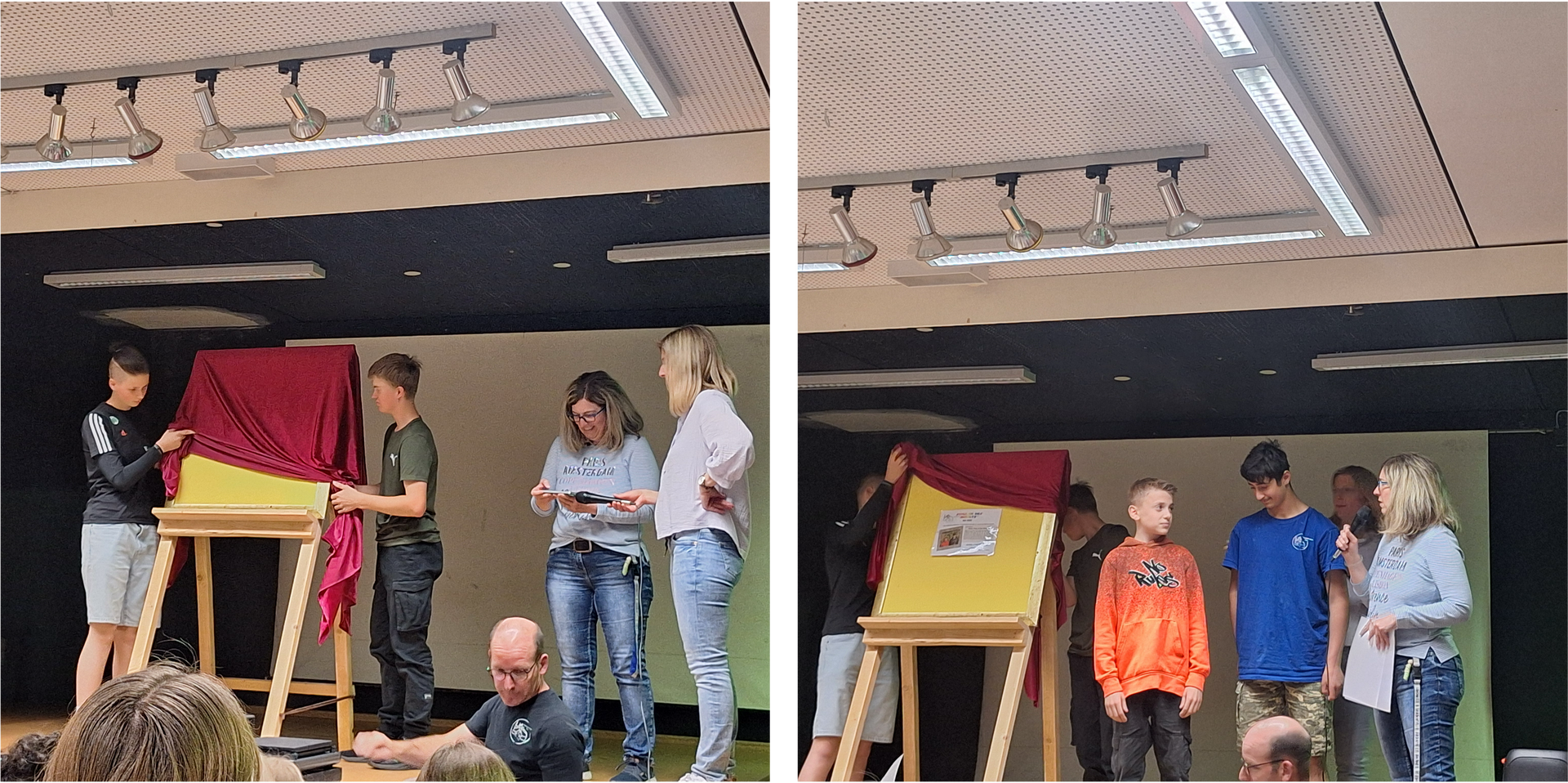 Die ganze Schulgemeinschaft gratulierte herzlich und dann konnten wir noch einen tollen Film über die Zeit der erfolgreichen Zwölf und ihren BetreuerInnen in Mainz anschauen. Diesen gibts auch bald hier auf unserer Homepage. Also schaut demnächst wieder rein 😉